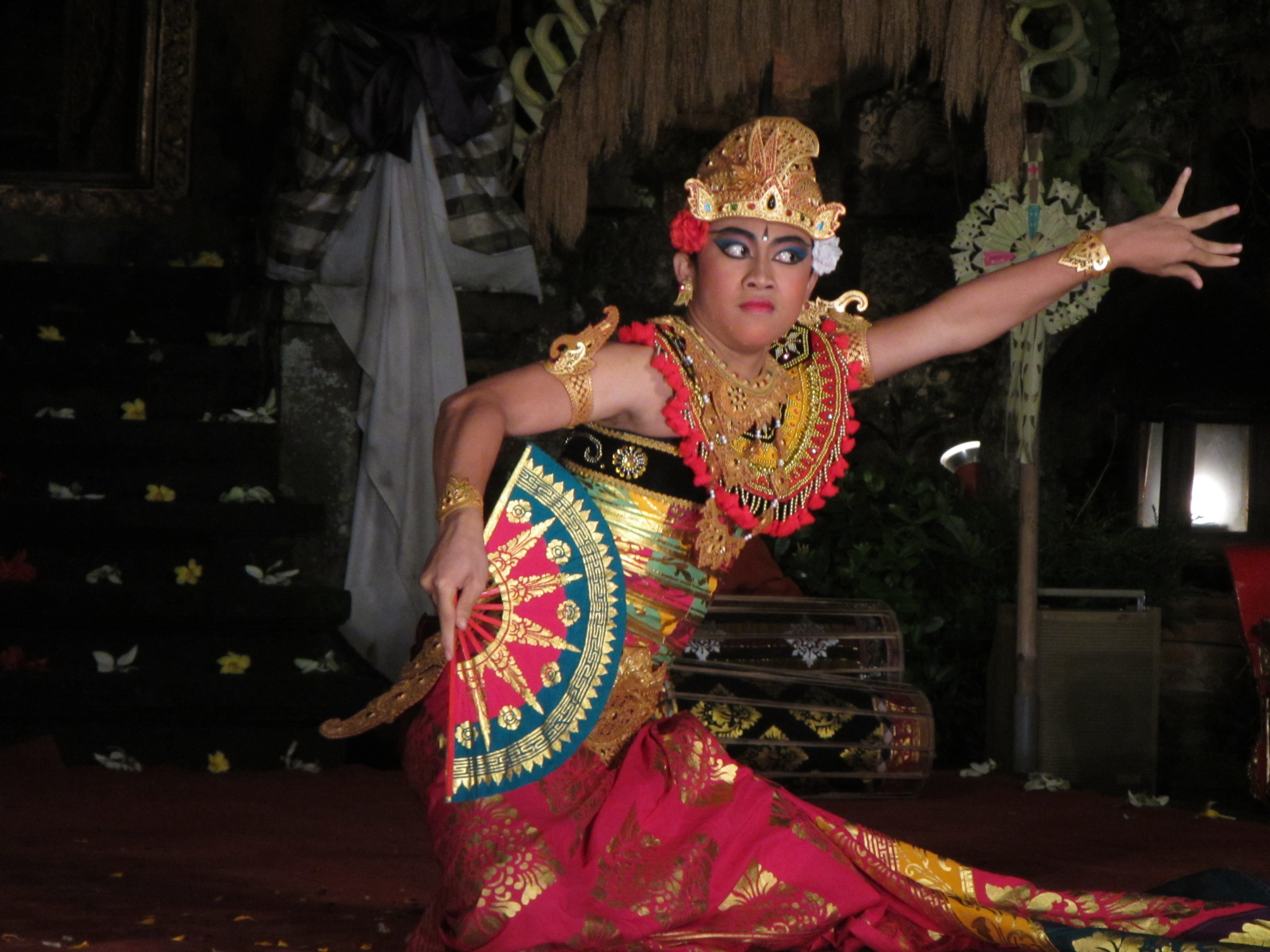 The evening featured an assortment of traditional dances. I liked the Kebyar Dudak, which “depicts the infancy and adolescence in the life of a young prince”, which featured a young, heavily made-up man with very sharp and precise movements, as well as a confident sneer and a great eye roll.