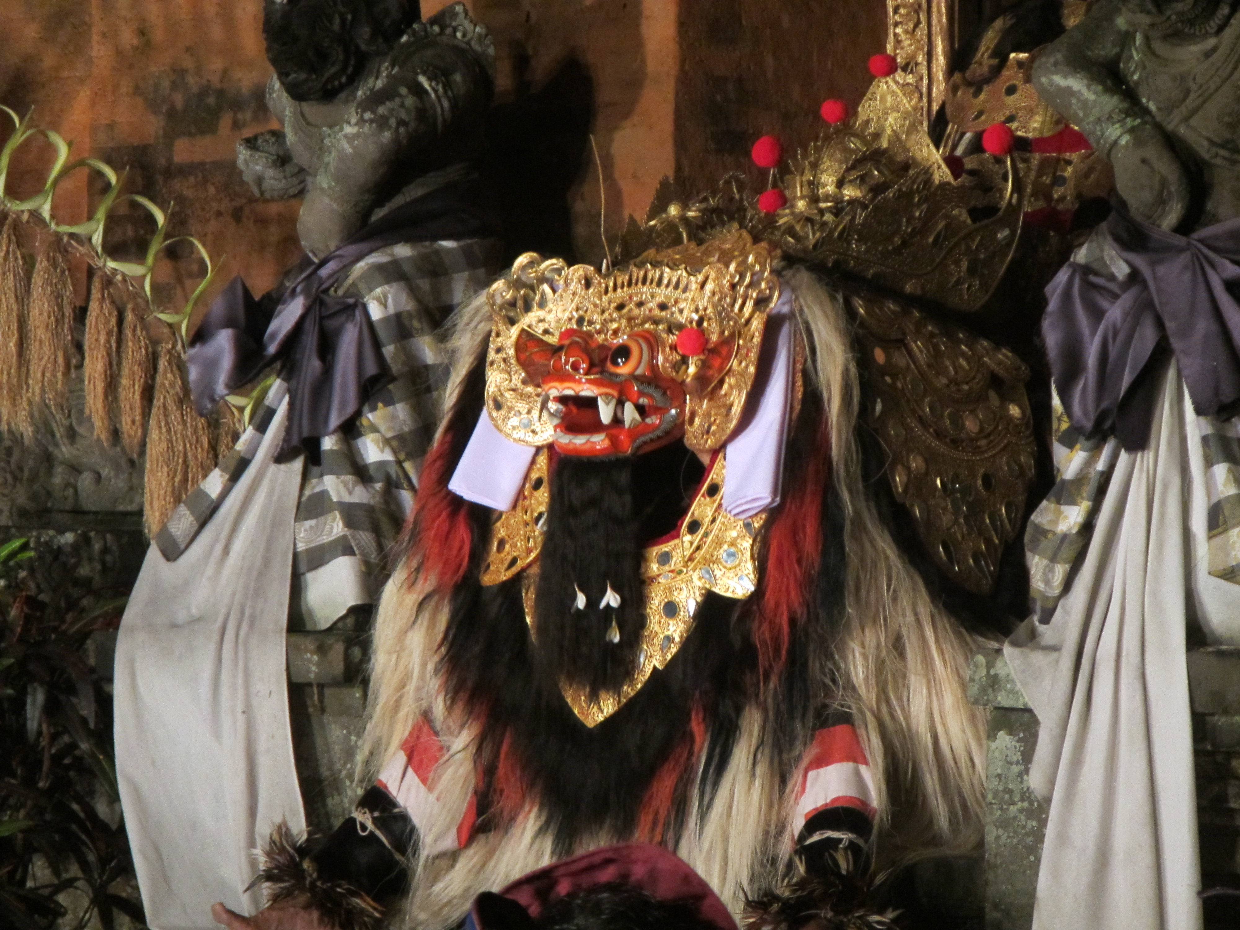 Later, we went back to the palace and enjoyed a much more exciting Legong dance than our first one, the dancers seemed much more passionate. We also saw the Barong dance, in which a large, shaggy embodiment of good does some onstage comedy with a monkey, and later fights a demon. Predictably, I love the Barong. So do children everywhere!