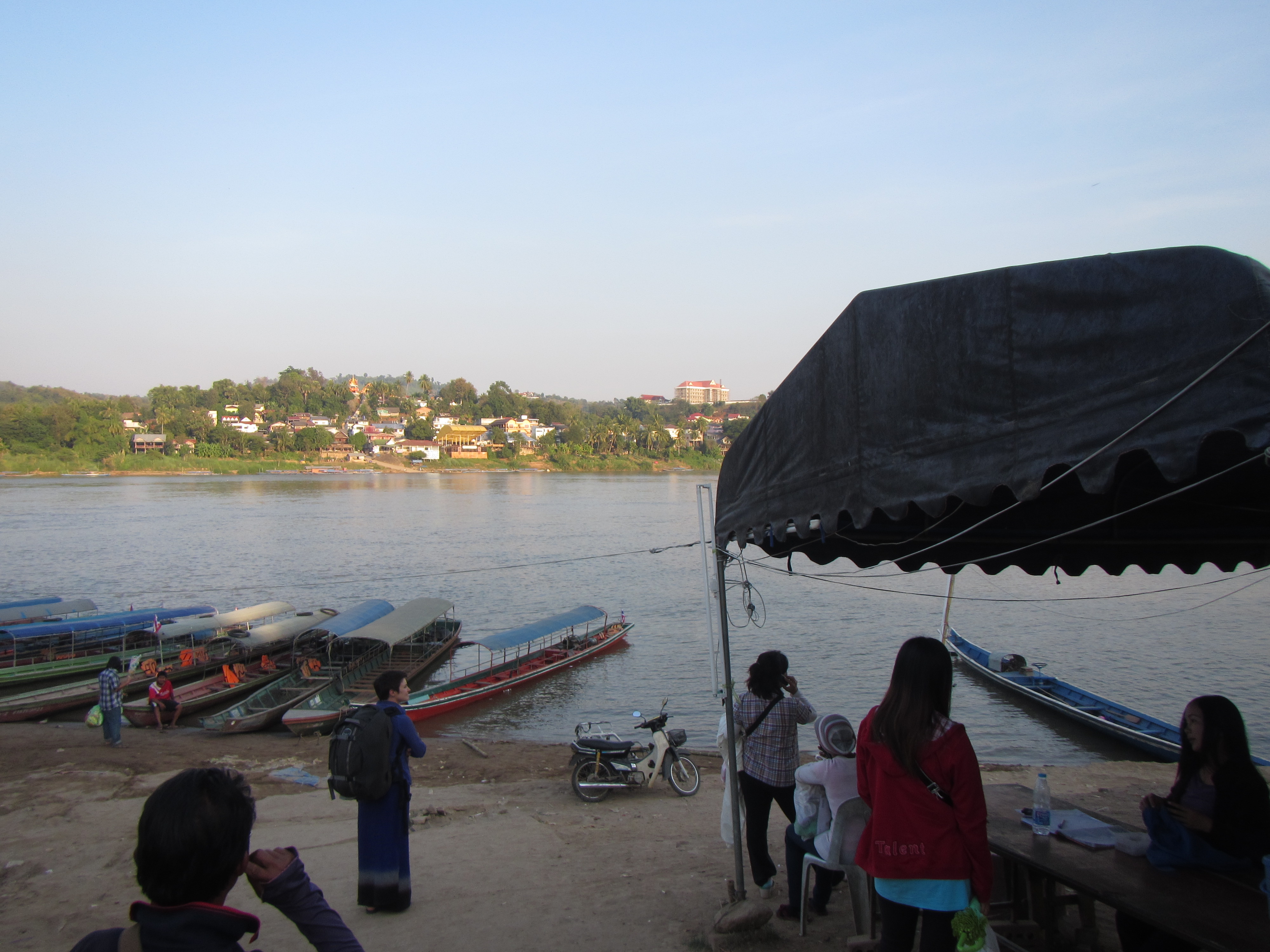 We spent one night in Chiang Rai and caught a bus to Chiang Khong, a small border town that sits on the Mekong River. After a bit of discussion, we decided to just cross over into Laos immediately, rather than spend one night more in Thailand. We had to hurry – it was 4:30 and the border crossing closes at 6. We hired a tuk-tuk to take us the kilometer north to the dock, filled out our Thailand departure card, and hopped on a longboat to the other side: Huay Xai, Chiang Khong’s Laotian sibling.