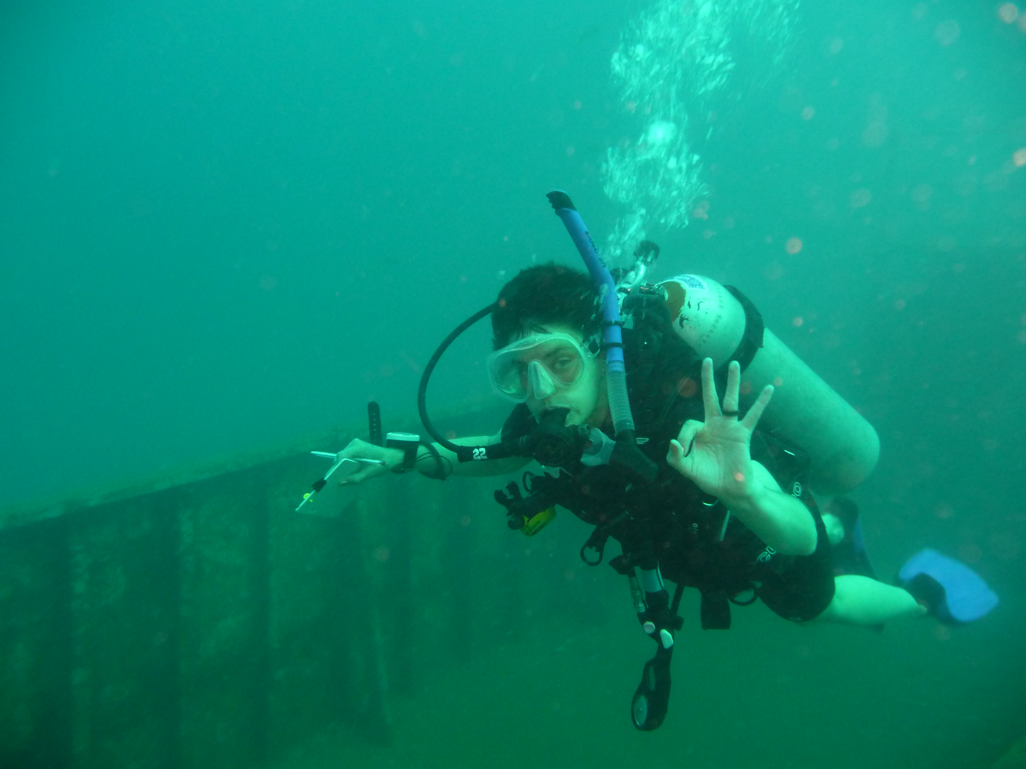 We have dived twice since our arrival, one at Talet Malang (sp?) and one at Shark Point. We saw a lot of good fish, one and two white-tipped sharks at the latter, which was awesome. Shark Point also had some great soft coral. However, that one was a pretty exciting dive – the current got so intense that keeping up with the other, bigger, more athletic divers had me blowing through my air from exertion. Eventually, I had to share air with the divemaster while the three of us crawled hand over hand across the ocean floor to reach a safe place to ascend, the current was so strong. The divemaster had a huge tank with a lot of air left, so I actually found the whole experience fun and educational rather than frightening, a sort of cross between diving and rock climbing. We all did everything you are supposed to do when things go wrong, and we arrived safely at the surface and then onto the boat, and on to shore.
